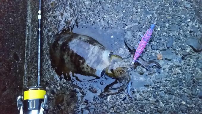 和歌山県南紀でエギングをしてきました。 朝マズメに漁港のカケアガリで、300g程のメスのアオリイカをGETです♪