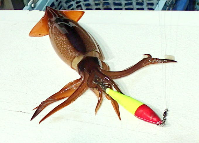 今月20日、敦賀湾に出船する遊漁船でムギイカ便がいっせいに開始、一年ぶりに可愛いムギイカ(スルメイカの新子)と遊ぶことが出来た。当日は、イルカの回遊もありアタリダナは100mより上に浮くことはなかったが、メタルとドロッパーを効率よくローテンションすることで数を重ねた。