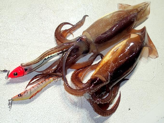 イルカの大群襲来で苦戦中の福井県嶺南でしたが、いよいよ爆釣モードになりました。200mラインでタナは80~160mと深くおまけに激流で潮が早く、80号オモリで狙うウキスッテゲームが有利な状況下、イカメタルゲームで攻め切りました。25号の鉛スッテが大活躍!