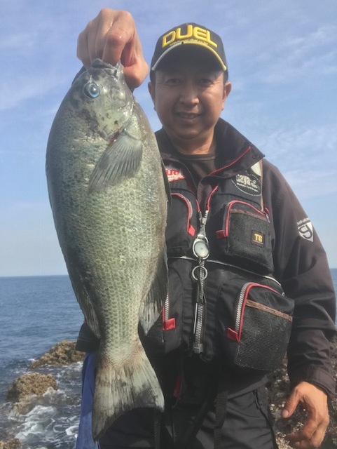 上五島へクロ狙いで釣行。まずは赤島のハナレに瀬上がりとなり、夜釣りを開始。釣り開始から30分たった頃、44センチの口太を釣り、その後ポツリポツリながら釣れれば40アップの口太クロ。夜明け前に60センチの真鯛、その後周囲が明るくなり始めた頃、オナガの42センチがヒット。昼前に倉島のハカタ瀬に瀬変わりし、30?35センチ級の口太が良く釣れ楽しませてくれた釣行であった。