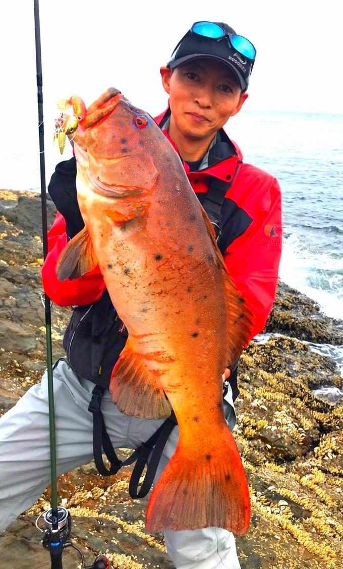 スジアラ狙いで沖磯へ行って来ました。 シャローの瀬際でヒットし、何度かリーダーが瀬に摩れる感触がありましたが、根ズレに強いBIGフロロカーボンを信じてパワーファイト。 4.2kgのスジアラをキャッチする事が出来ました。