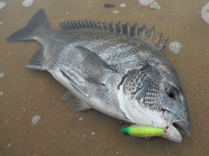 博多湾サーフへトップゲームへ行ってきました。これからの季節はキビレやシーバスが面白くなってきます。朝マズメからスタートするも小一時間程アタリなく経過。そして上潮が動き始めた6時過ぎにファーストコンタクト!当地では珍しいチヌ(クロダイ)のヒットです。ヒットルアーはヨーヅリの「エバポッパー」。このルアーはウエイトの割に飛距離も出て、シャローに群れるハク(ボラの幼魚)にサイズ感ビンゴです。それからタイムリミットの7時半までにキビレとシーバスを追加。シーバスはあちこちでボイルするシーンが見られ、派手目なポップ音のアピールを得意とするヨーヅリ「3Dインショアポッパー」に高反応でした。 ここに紹介しきれない写真等、インスタグラムからも釣果情報発信中です! https://www.instagram.com/ichirohiradance/