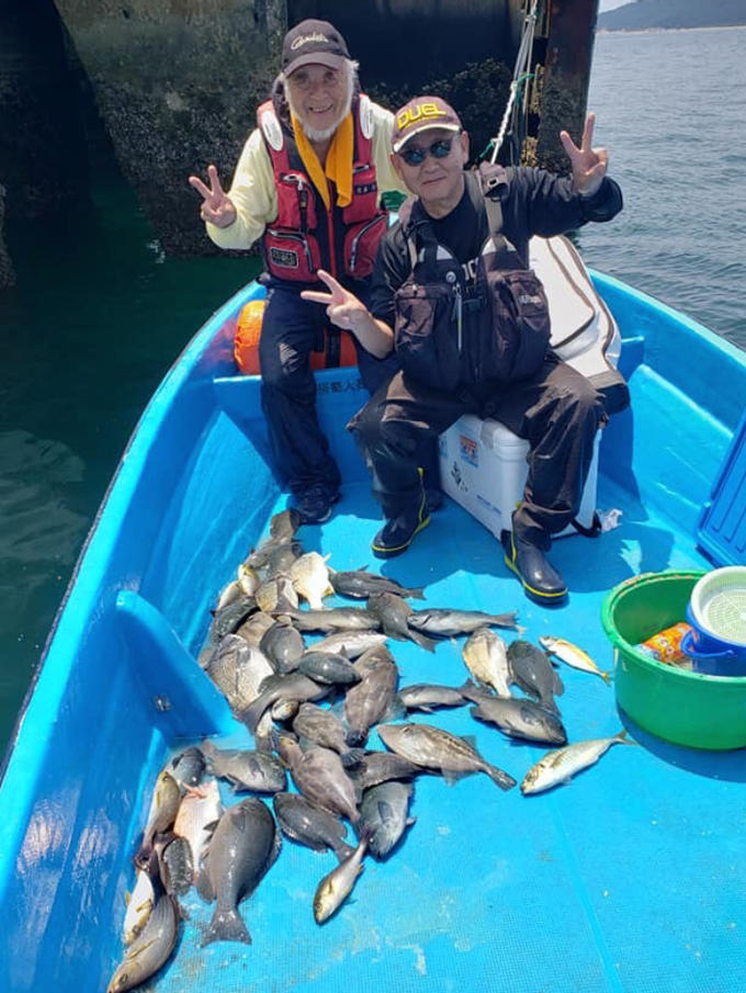 天候の具合でなかなか行けませんでした。 2ヶ月ぶりにやっと出れたので、海南港村井渡船さんに佐藤会長を誘っていってきました。 やはり先週の台風の影響か水潮バリバリの菜っ葉潮。 しかし、流石会長、コンスタントに良型のぐれを抜きあげておりました。 結局、今回は15対15のドロー。 楽しい一日でした。