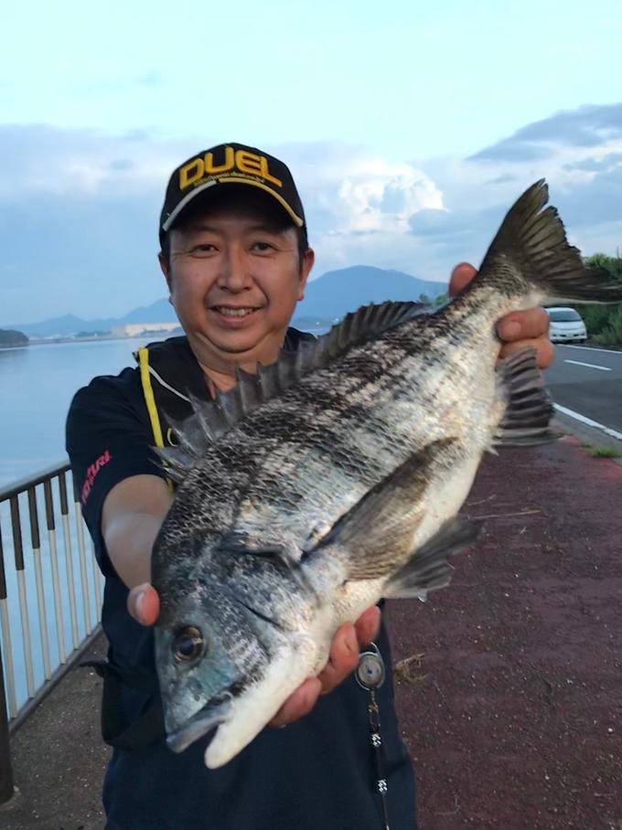 少し遅めの夏休みが取れた9月4日(水)午後から最近好釣果が続いている伊万里へチヌ狙いで釣行。釣り開始からしばらくはアタリもなく、またフグが多くハリが頻繁になくなる状況。しかし段々とマキエが効いてくると、手の平~足の裏サイズのメイタが頻繁に竿を曲げて楽しませてくれる。何とかチヌサイズをと粘っていた午後7時頃微妙なアタリを捉えて釣れたのはチヌ47センチ。その後は辺りも暗くなりマキエもなくなったので、周辺を掃除して納竿とした。