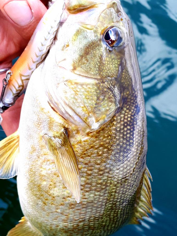 野尻湖は例年に比べ、水温が20℃以上で水質も良い状況。小型バスは水深5m程のウイードエリアに多く、シャッドでウイードの上をドラッキングで通すと好反応。さらに深い側の中層にいることが良くあるのでロングビルなどを引くのもオススメです。大型バスは12~15mのワカサギ群についてますが非常に口を使わせるのは難しいです。自信のある方は是非チャレンジを!