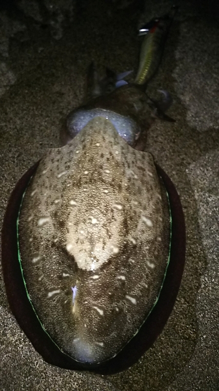 仕事帰りで、時間限定のエギングへ! なかなかアタリが出ずに・・・このエギにチェンジして1投目、シャクったらノッてました(笑) いいヒキで、ジェット噴射も力強く・・・てっきりアオリイカだと思ったらコウイカでした(笑) ホゲらなくて良かった。