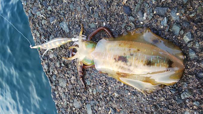 潮の動かない濁りの強い切れ藻の沢山浮いているなかでかろうじて一つだけ。