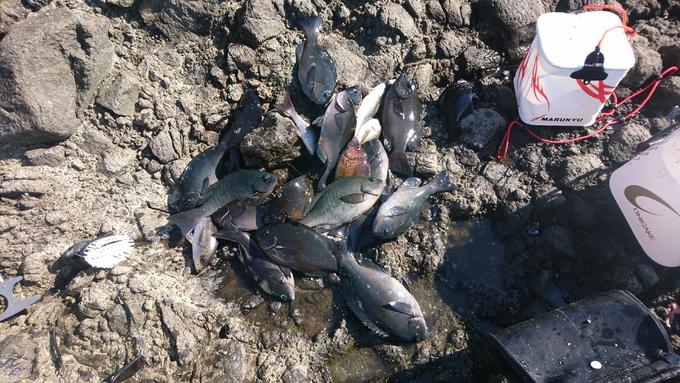 沖に手前はイスズミにイサキに多くて❗少しだけ出てるサラシの際の中でした。 しぶしぶでした