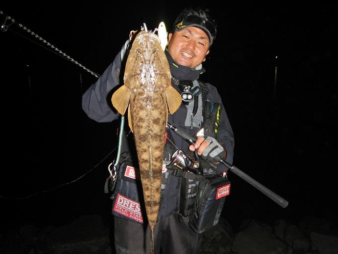 リスクを負ってボトムレンジをHARDCOREフィンテールバイブ70をショートピッチなアクションで通してガツンとバイト! 55cmの良型マゴチをキャッチ!! SUPER X-wireを信頼して最後はぶっこ抜きました☆