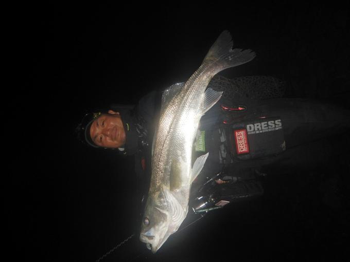 新調したHARDCOREフィンテールバイブ70の初めて使うカラーにてキレイ魚体のシーバスをキャッチ! SUPER X-wireも6時間づつ使用して9日目を迎えました。 前作のX-wire耐久性を超えてることを実感しています。