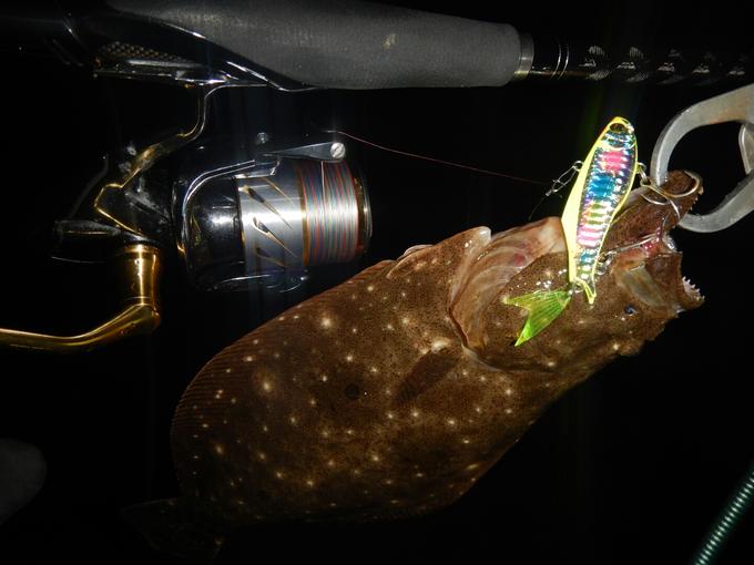 HARDCOREフィンテールバイブ70で河川河口域の岩と砂地の点在するポイントでボトムラインを極力スローに探ってヒラメをキャッチ! SUPER X-wireは若干色落ちしてきた程度で毛羽立ちはありませんが、念のために次回で逆巻きにして使用したいと思います!