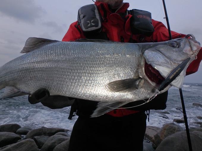 福岡県地磯へ朝活ヒラスズキ狙いです。当日の気象予報は北東風波高1.5mの比較的穏やかな天候。ヒラスズキ狙いにはちょっとサラシ不足な状況でしたが、沖の潮目をメインに「ヘビーショット105」で表層レンジをリトリーブ。時よりルアーに驚いたマイクロベイトが水面で逃げ惑うシーンを目撃。そして明るくなりかけた朝マズメ、「グンッ!」とバイト。当地アベレージサイズのヒラスズキがヒット!このサイズは群れの回遊パターンで立て続けに3バイト。その後、30分程沈黙でそろそろ朝活終了かなって空気感の時、「ガンッ!」と再びバイト!中々のファイトで上がってきたのは60cmアップのヒラスズキです!早朝2時間のゲームでしたが楽しめました。