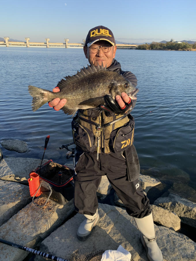 紀ノ川 ちぬ 先週に続き 昼前からちょこっと 紀ノ川チヌ 調査に行ってきました。 昨日の 雨の影響か 水温低下か 強烈な 激渋。 いつもは、 頻繁に当たってくる豆チヌも全くなし。 潮の流れも 最高なのに。 でも、 ラスト2投目 来てくれました。 真っ黒の 居着きのチヌ。 42センチでした。 危うく ボーズになるところでした。 本番まで もう少しです。