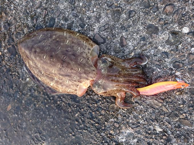 違和感を感じて合わせみたら動かない❗根掛かりかと思ったけどテンションかけたままキープしたら走り始め、イカだっ‼️んっスピードが遅いぞ、止まった!んっ重いだけ、まさかっ という感じでした。重量1.5kgです。