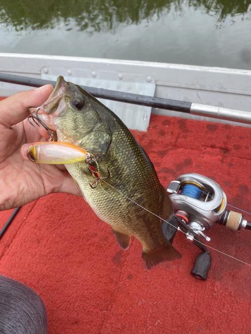 印旛沼にて、ハードコアポッパーのロングポーズで。小型でしたが、水平浮き姿勢で魚に違和感を与えず、少しの揺れでラトル音を出している所がミソですね。 無風状況であればPEラインとの相性が抜群によろしいです!