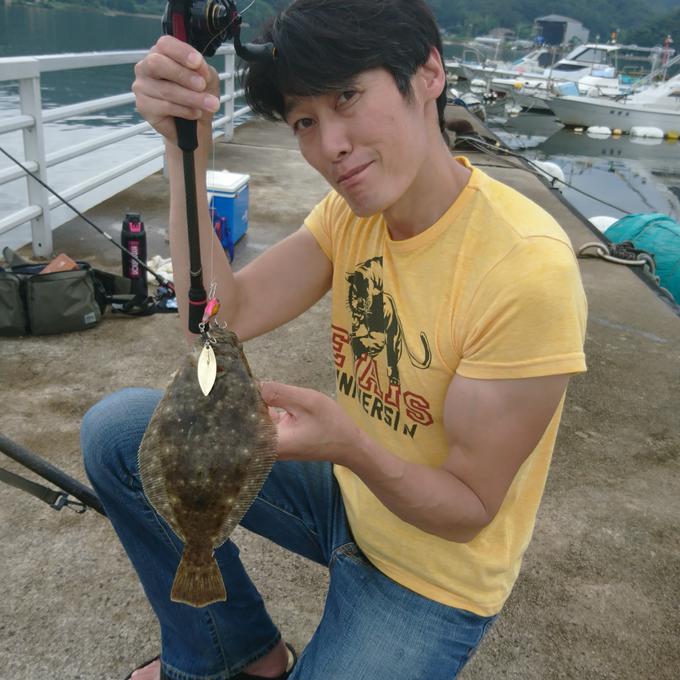 子供とヒイラギ釣りの合間にハードコアスピンでヒラメ狙いです。水深3m前後の砂地エリアにハードコアスピンをボトムまで沈めリフト&フォールのリフトで「ガツン!!」小さいながらもヒラメをゲットする事が出来ました