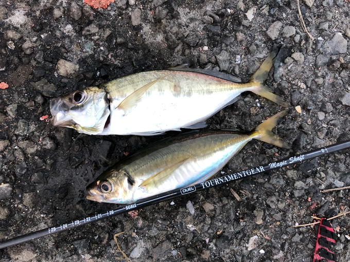 県を跨いでの移動自粛のため、大田区の城南島海浜公園へ行ってきました。狙いのクロダイ、メジナもそこそこ釣れましたが、20センチオーバーのアジの回遊がありました。良型は単発ですが、豆アジは数釣れます。