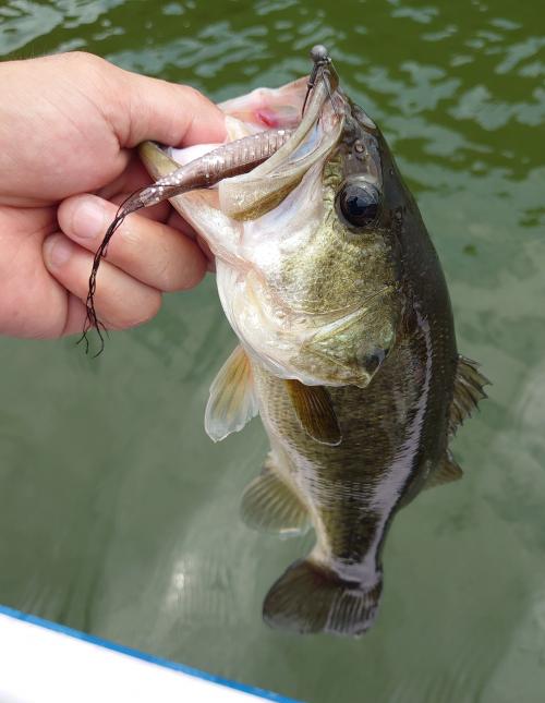 この時期の亀山ダムはワカサギとワタカ喰いのバスがメインになります。毎年この時期に良いウープス3インチによるミドスト!ワカサギやワタカのレンジに合わせてあげることが大事。ミドストにはT-7の3lbがおすすめ!しなやかなのでミドストのようなラインのフケのアクションを出しやすくしてくれます。