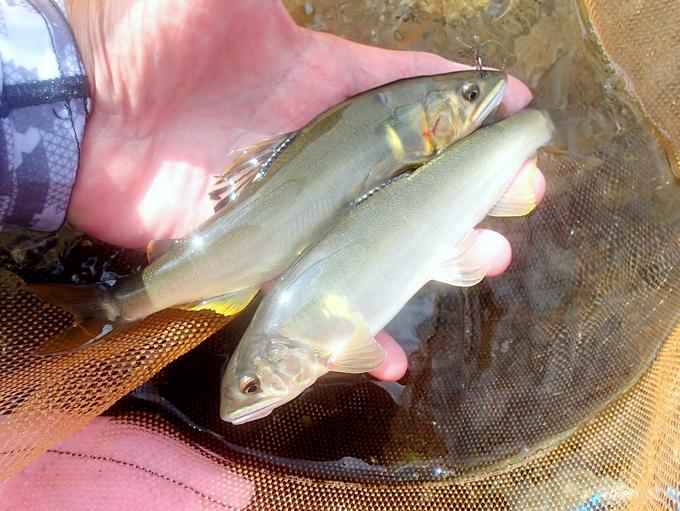 土日明けの月曜日、前日地元名人が入釣したポイントでしたが、アーマードFH0.08号の水キレの良さが良型アユを連れて来てくれました。