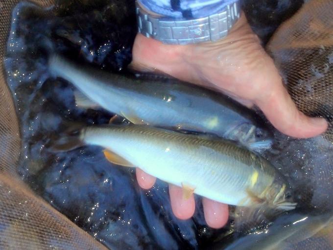 9月になれば、琵琶湖産鮎は産卵の準備のために群れ鮎化し、オトリ鮎には超自然体の泳がせが求められる。群れ鮎の中に囲まれたオトリ鮎は、アーマード FH 鮎-水中糸- 0.08号 の超軽量仕掛けに気づくことなく群れ鮎に同化し狙いどおりの超自然体!瞬間追いの体勢を見せる野鮎を一撃でヒットさせた。