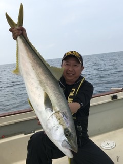 今回は大島船長と2人で青物のポイント探しに行ってきました。芦屋から出航し響灘白島周辺のポイント水深40m前後を探って周るも上げ潮の間は全くアタリなし。それでも2人共粘り強く探っていると、下げ潮に変わってから大島船長が82センチのヒラマサを釣り上げ、同じポイントへ船を付け直しシャクリ続けていると私にも待望のヒット。釣り上げたのは98.5センチの良型ヒラマサだった。お互い釣果も出たので、午後1時少し早目に納竿とした。