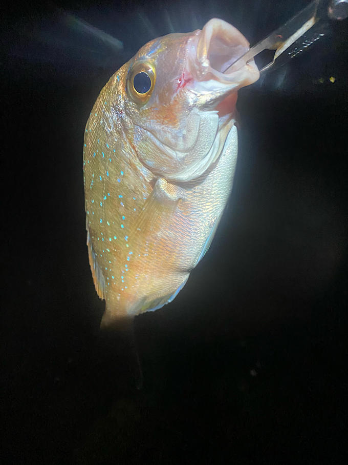 エギングで全く反応なし。メバリングしてると鯛がかかりました