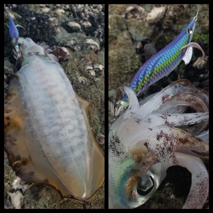 最近は青物を避けてのポイント選びが重要だと考えてます。 主に使用したエギはアオリーQ・ロングキャスト・パタパタスローです。 反応が良かったのはクリアーカラー。 秋も深まりサイズも上がってきました、今回の釣行では500~600gのアオリイカが2杯。 まだまだ小さな100~200gが数杯釣れました。 今回も3.5号のエギオンリーで投げましたが、それでもアタックしてくる小さなイカの成長が楽しみです。