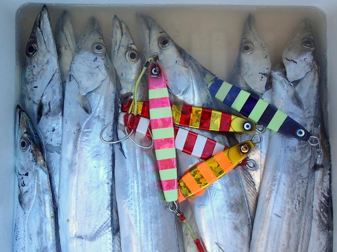 明石海峡の太刀魚ジギング、ブランカ150gしばりで攻めました。頻繁に変わるヒットカラーとジャークのピッチ・ストローク巾・スピードを的確に追いかけて楽しい釣りを堪能しました。