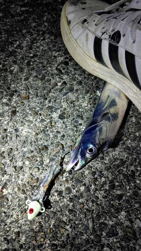 旨いタチウオの蒲焼き丼が食べたくて、夕方から参戦!雨が降りそうな空でしたが、陽が暮れると同時くらいに地合いが・・・しかしその地合いが短い(笑)何度かオカズ分の4匹を釣って、雨がパラパラしてきたので、終了としました!