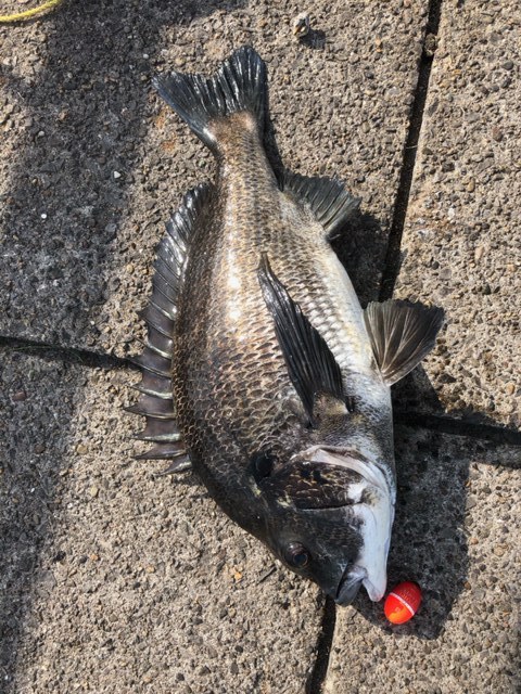 緊急事態宣言も解除となったので、久しぶりに神奈川県川崎市にある東扇島西公園へクロダイ狙いで釣行してきました。乗っ込みの時期なのですが、水温が安定しないせいかあまり良い釣果は出ていませんでしたが、ようやく釣りに行ける状態になったので、気合いを入れて朝から出撃です。 ウキは新製品の「TGポートマスター」Mサイズの0を使いました。このウキはサルカンの使用を前提としているので、0浮力でもガン玉の使用が可能です。ハリスは食い渋りを考慮して「パワーカーボンMAX」の1号を結びました。 午前9時過ぎに釣友が42センチのクロダイを釣り気合いを入れますが後が続きません。餌取りも少なく沈黙が続きましたが、午後3時ようやく私にアタリがあり、慎重なヤリトリの末に48センチを取り込みました。 今回は型を見た程度でしたが、久しぶりの釣りで結果が出せて満足でした。水温が安定すればコンスタントに釣れるようになるので、今後に期待したいところです。