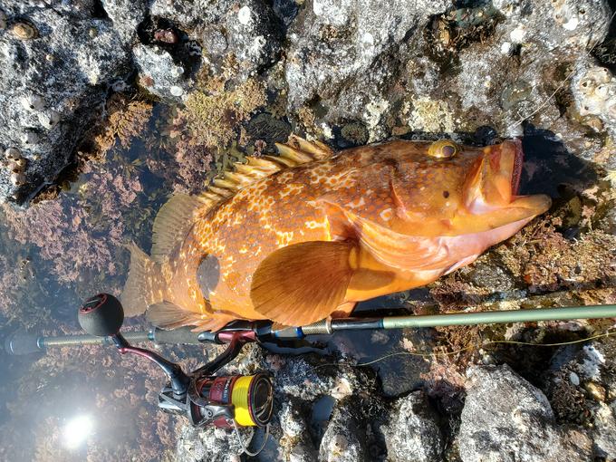今季初のロックフィッシュゲーム 水深が30mと深めなのでメインラインは操作性重視でpe0.6号 ビッグなキジハタを捕れたのもラインの強度と操作性のお陰です。
