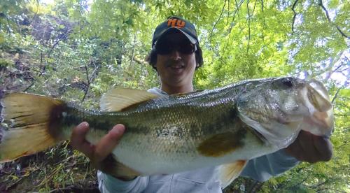 NBC房総チャプターのプラの釣行!前日に大雨が降り急激に濁りになった亀山ダムです。流れがあるところを中心にスタッガーワイド4のギルネコでカバー周りを撃っていきラインが走りフルフッキング。上がったのは55cmのバスでした!ハードコアT-7 14lbでカバー周りでも余裕で釣り上げることが出来ました!