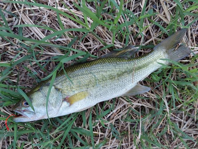家から150メールの川で、子バスとたわむれて来ました。