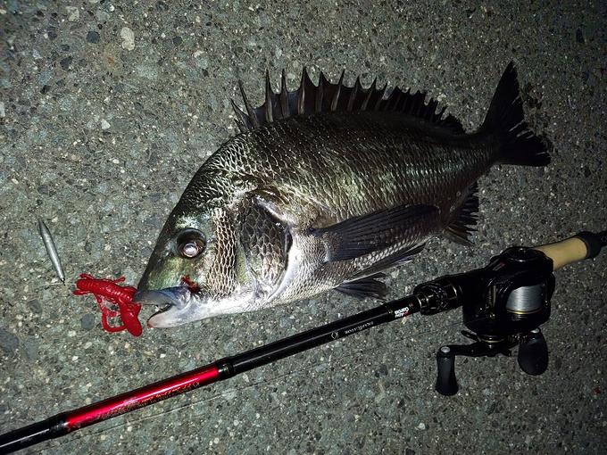 山陰チヌゲ~開幕です。山陰のチヌゲ~は流れが速く根が荒いポイントがメインとなるので比重が重くより細く強いラインが必須!!と言う事はアーマードF+Proがベストマッチです。2,8インチの7gのフリーリグで40クラスを爆釣でした!!