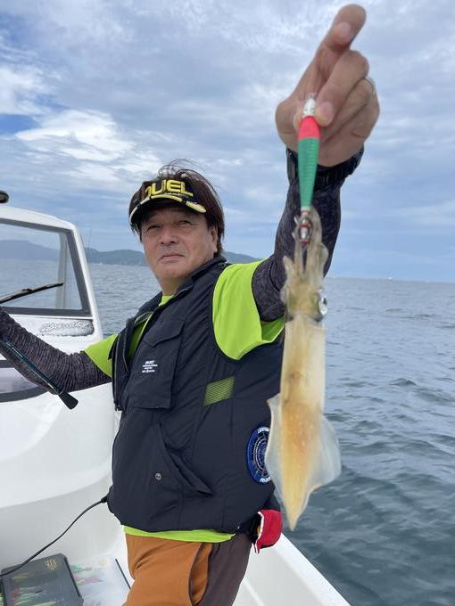 デイのイカメタルに 佐賀関沖の高島周辺に行って来ました~! 午前中は上げ潮。1投目からケンサキイカがヒットです。ナイター程釣れませんが ポツリポツリ連れましたが…下げ潮に変わると 最近の大雨による濁った「水潮」が(汗)バッタリとアタリは止まりました~(涙)またデイイカメタルのリベンジですね!