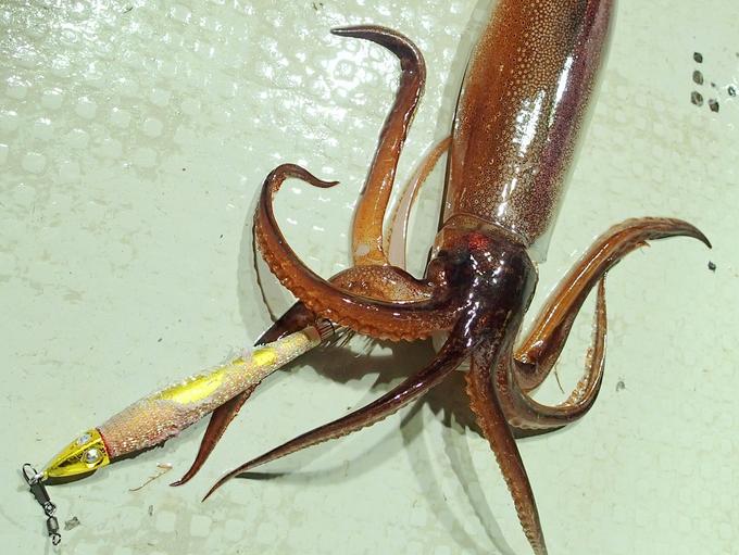 美浜の船長からスルメイカが釣れてるとの情報を頂き、急遽出撃。当日は、鉛スッテ四ツ目15号 GRAIが絶好調!連発するヒットにスッテボディーの巻き布はボロボロ。スルメイカの激しいヒットと強烈なファイトを堪能しました。