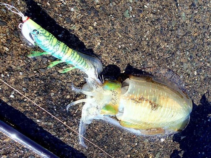 連日の大混雑でプレッシャーの高い激戦区ポイントのデーゲーム。EZ-Qキャスト喰わせラトル2.5号をチョイスしカラーローテーションで攻める。トマホークシンカーバンパーとパタパタフットによる揺らぎアクションを信じ、ボトムからスローにシャクリ、誘い出すことが出来ました。