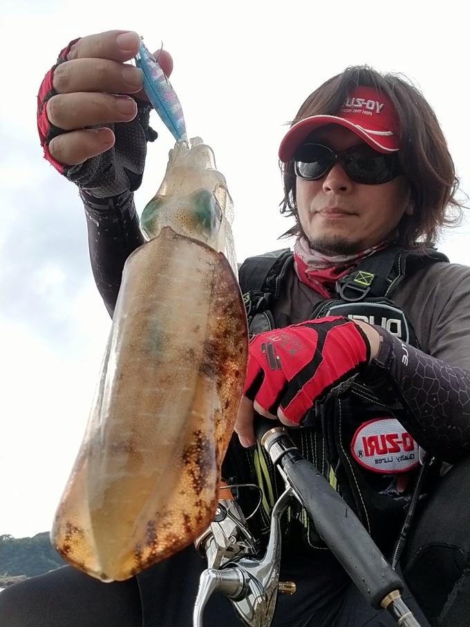 水深約1~2mのシャロー地帯でLCのスロー使用。遠投後シモリを交わしながら餌木を水平移動。良いサイズが出てくれました~♪