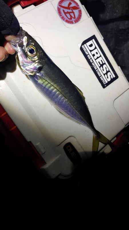 辺りが真っ暗になり、潮の効いているポイントを探して、待望のアジ!しかし今シーズンは、肩が少し小さいですが。まあ釣れるだけマシでしょうかねぇ。