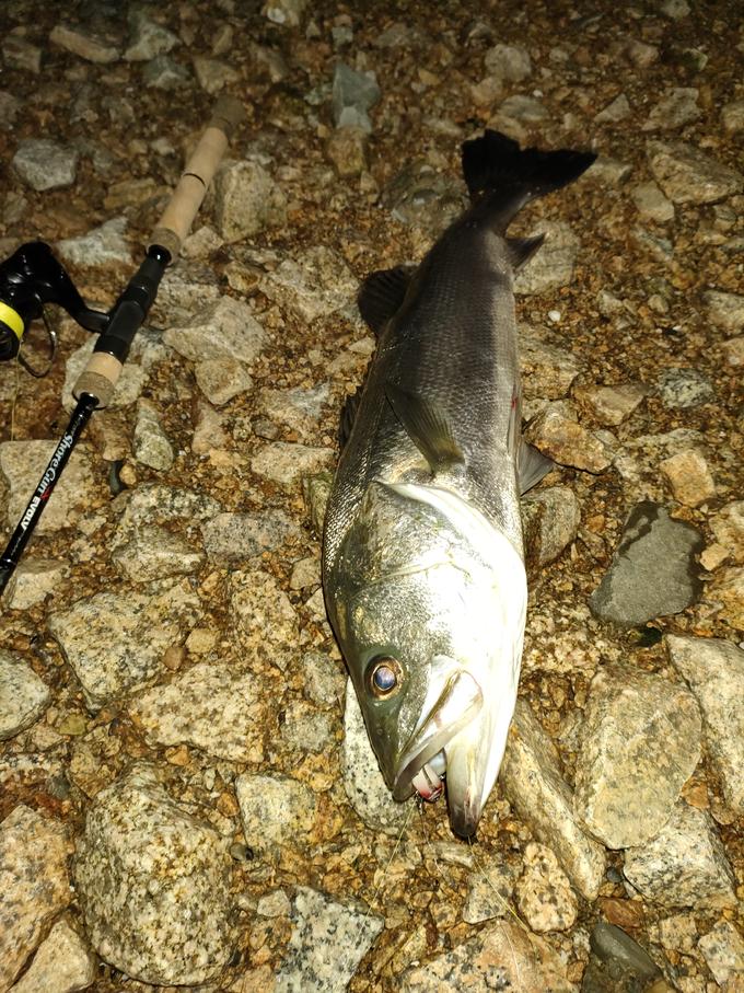 朝の淀川が良い感じだったので、夜にもう一度行ってきました。濁りも更に増しバイブレーション早巻きに来てくれたシーバスです。久しぶりのファイトにあたふたでしたが、無事にキャッチする事が出来ました。