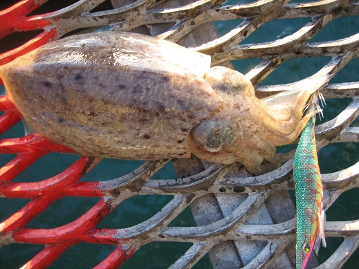 12月とは思えないほど暖かく風もない絶好のコンディション。開始1投目でコウイカゲット!