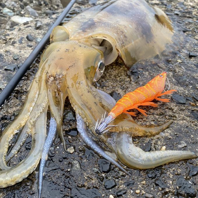 新色〜ケイオレンジオレンジイソスジ! アピールが強いので活性の高いアオリイカを狙うのに良いです!