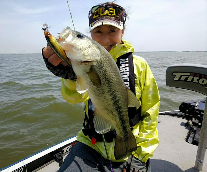 今月デビューしたL-BASSシリーズ。ウィンディーサイドにL-バス ジャークベイト80SPをキャスト。2回ジャークして止めた瞬間、下から食い上げてきました。やっぱりプラグの釣りは最高に楽しい♪ダイヤレンズフィニッシュのキラキラボディーが、ジャークの度に光を放ってベイトフィッシュを演出します。マディーな霞ヶ浦水系ではキラキラすることでより魚に視認されやすく、強いファクターとなってくれますね!軽いロッドワークでもしっかりと動いてくれるので、初めてのジャークベイトルアーとしてもオススメ!