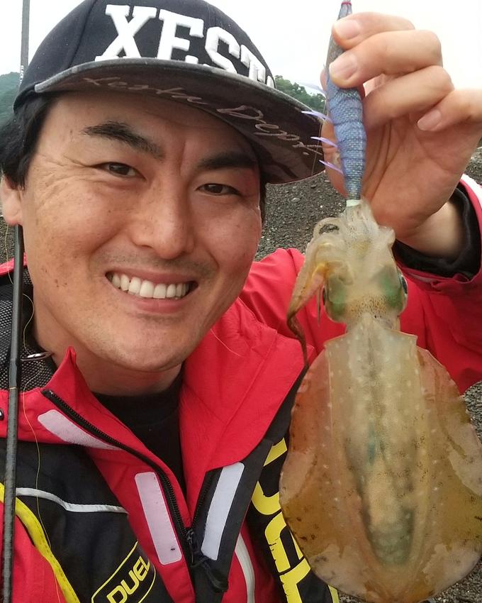 夕マヅメに立ち寄ったサーフで、チョコッとエギングをしてきました❗️今年は早生まれの個体が多いのか、この時期の新子にしては大きい、トンカツサイズのアオリをGETです♪