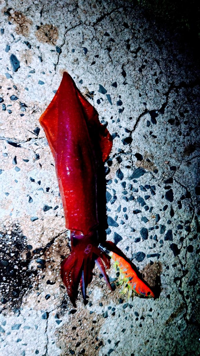 ナイトエギングでの釣果で、使用したエギは、EZ-Qキャストプラスでカラーが夜光ゴールドオレンジを使用しての釣果でした。