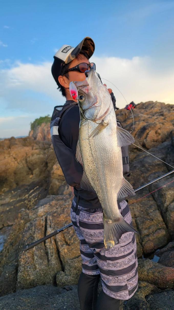 オフショアキャスティング続きでしたので久しぶりに友人と沖磯に行ってきました! 朝からいいサラシが広がってましたので飛距離と音でアピールできるLブルーのワンノックペンシルを選びました♪トップに出てくるヒラスズキは最高にエキサイティングですね!
