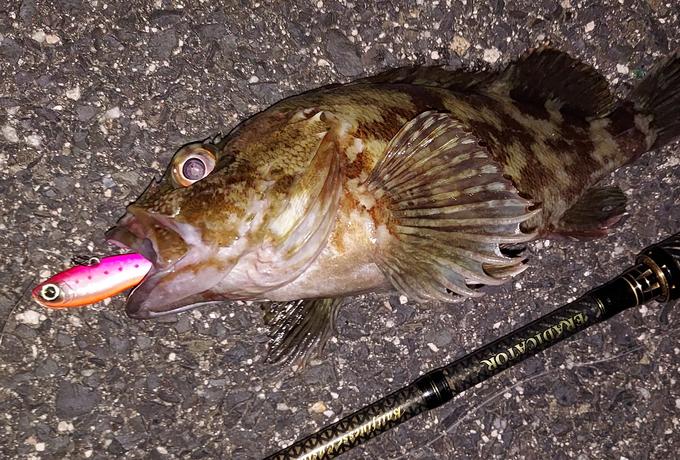 先日のキビレの追加調査に行ってきました。潮もまだ流れず少し早いかなと思いつつもハードコアソリッドバイブ55でボトムを丁寧に流していくと「コン」と軽いバイト。あまり引かないのでチヌではない。思った通りカサゴ君。でもとりあえず魚が釣れたので幸先良いスタートでした。
