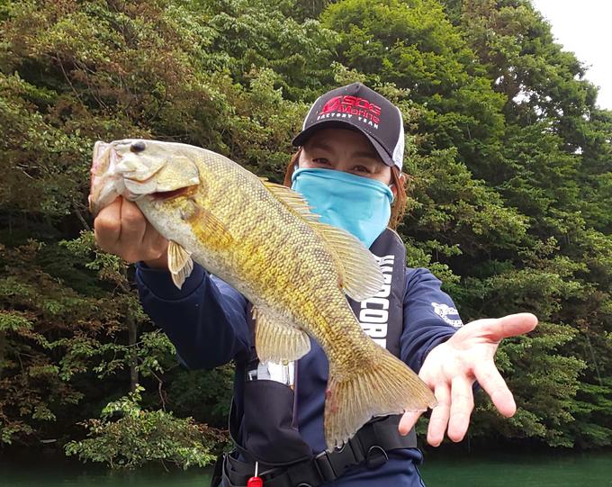 今年はなんだか雨が多いですね。その影響で桧原湖はまだ濁りが取りきれていません。このスモールは、あえて大きなワームをシルエットで見せてキャッチ!フリーリグが相性良かったです。
