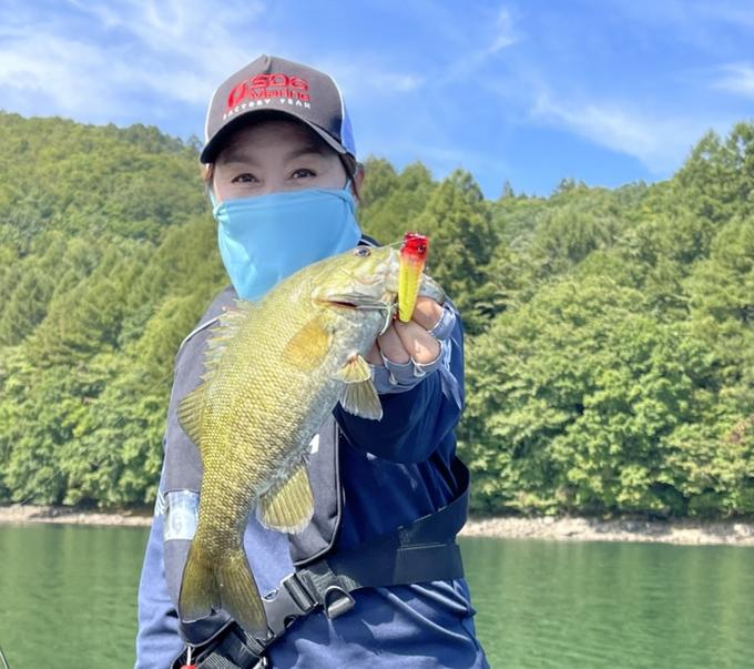 桧原湖ガイド釣行時。ハンプをフリーリグで狙っている最中、ハンプトップにバスの反応を確認!ルアーをLバスポッパーに持ち変えて、2投目でキャッチ出来ました!