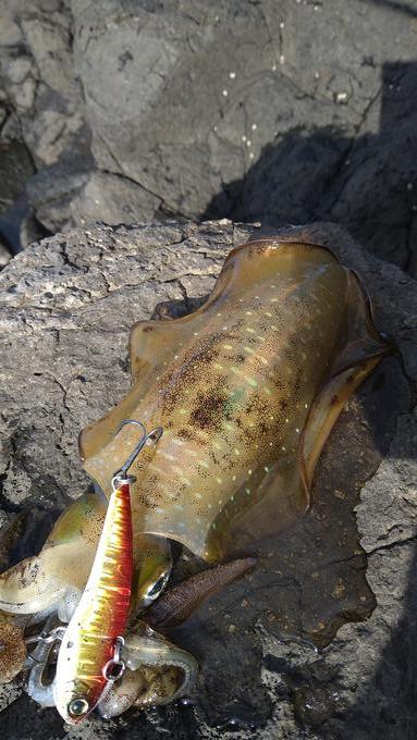 ソリッドバイブのリフト&フォールで ハタ狙いでしたが、まさかのアオリイカでした笑